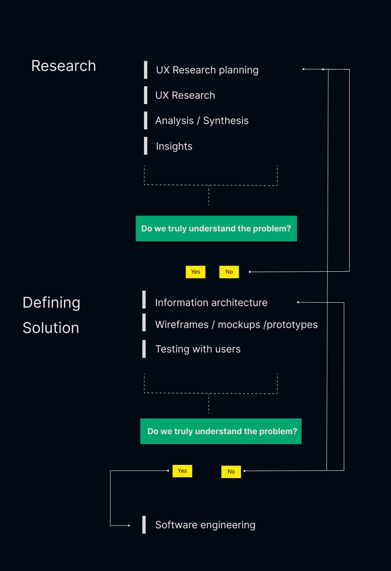 Our approach is to define and build the most valuable part of the product first. This helps you to validate your business goals quicker in the context of the market. It is much safer to invest in a product that has proved its market validity than to build everything and count on luck.